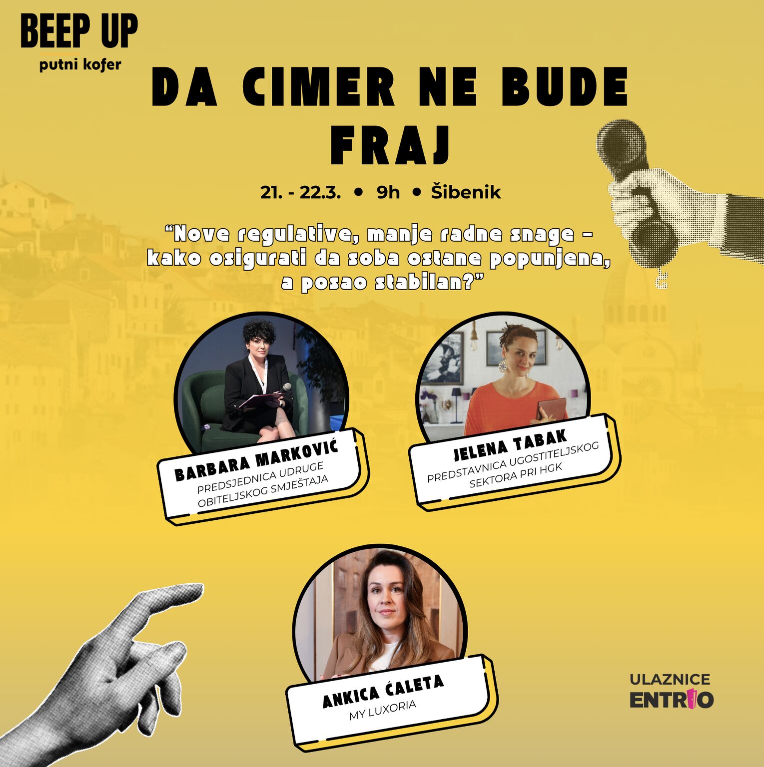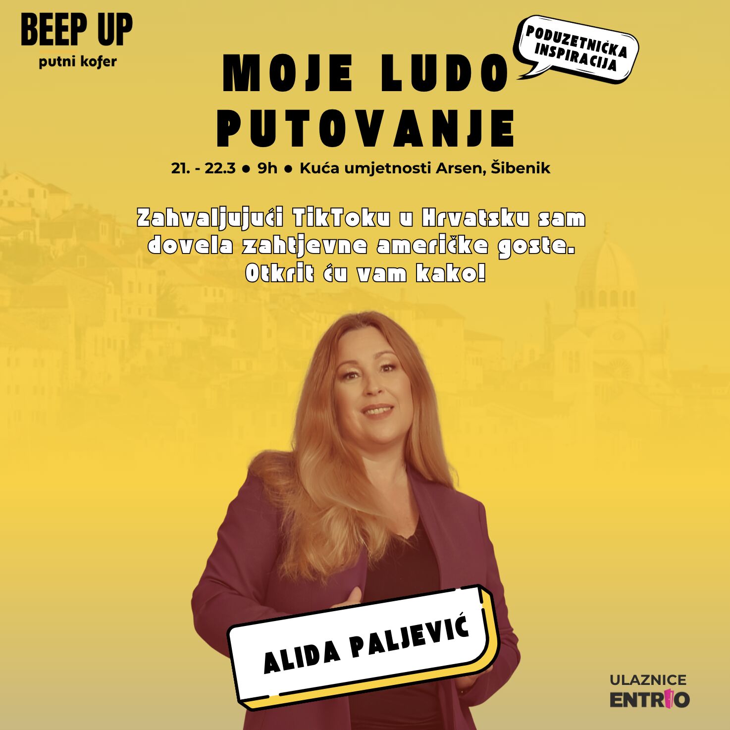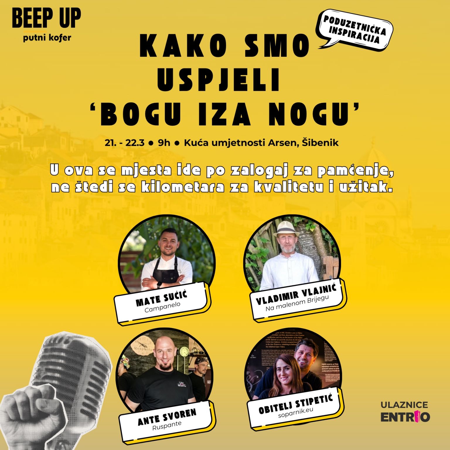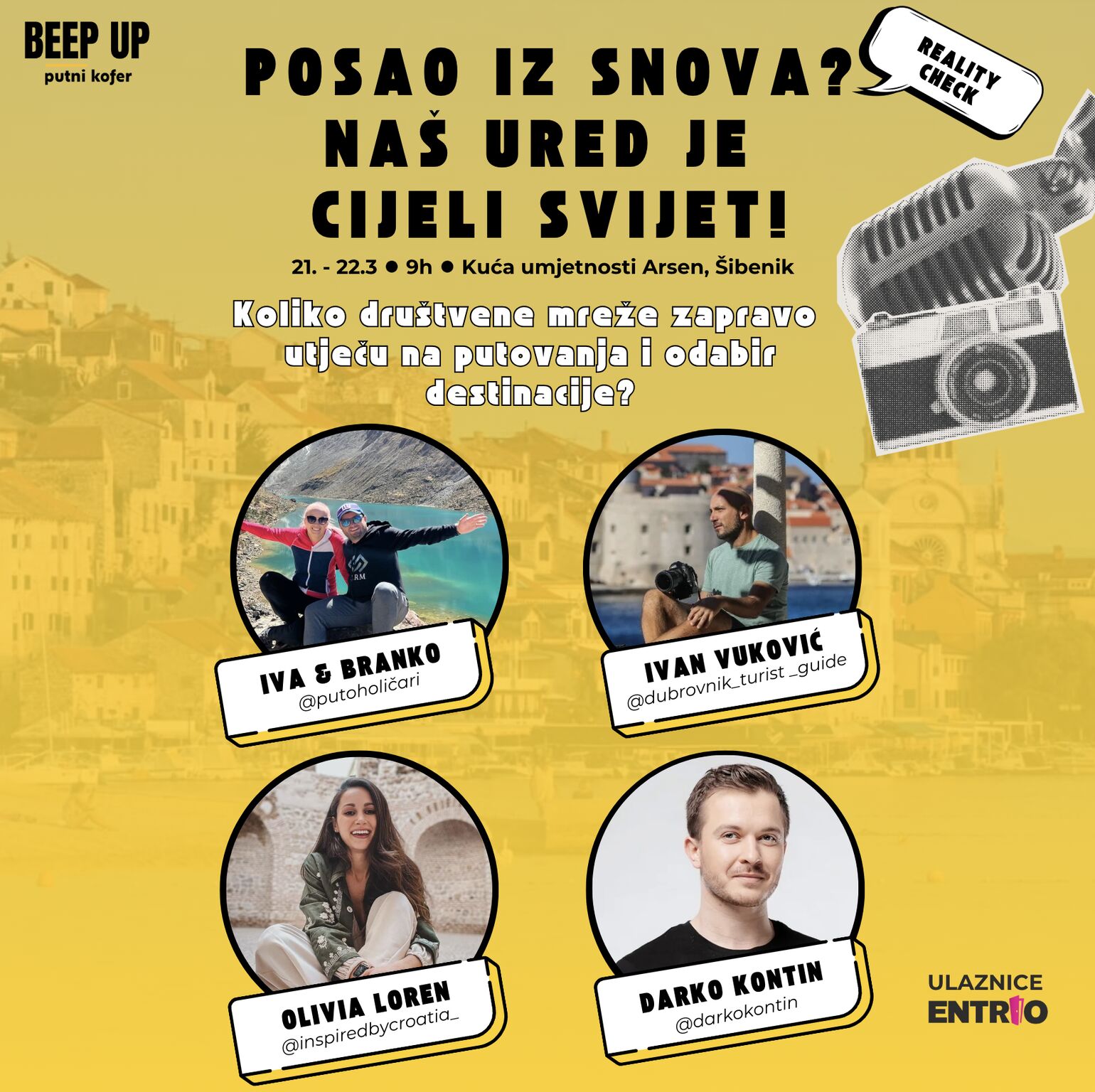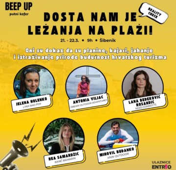 Na prvi dan proljeća Šibenik će biti centar turističke Hrvatske jer u Krešimirov grad stiže konferencija Beep Up Putni Kofer s pregršt zanimljivih tema i inspirativnih govornika! Kakva nas sezona očekuje, koji su ključni problemi hrvatskog turizma, kakvu ulogu u njemu ima gastronomija, a kakvu održivost i aktivni odmor… To su samo neke tema o kojima ćemo u Kući umjetnosti Arsen 21. ožujka razgovarati sto posto iskreno i bez filtera. A povodom dana žena, svoje mjesto na konferenciji možete uloviti po upola nižoj cijeni jer samo u petak 7. ožujka i subotu 8. ožujka uz jednu kupljenu ulaznicu drugu dobivate gratis!