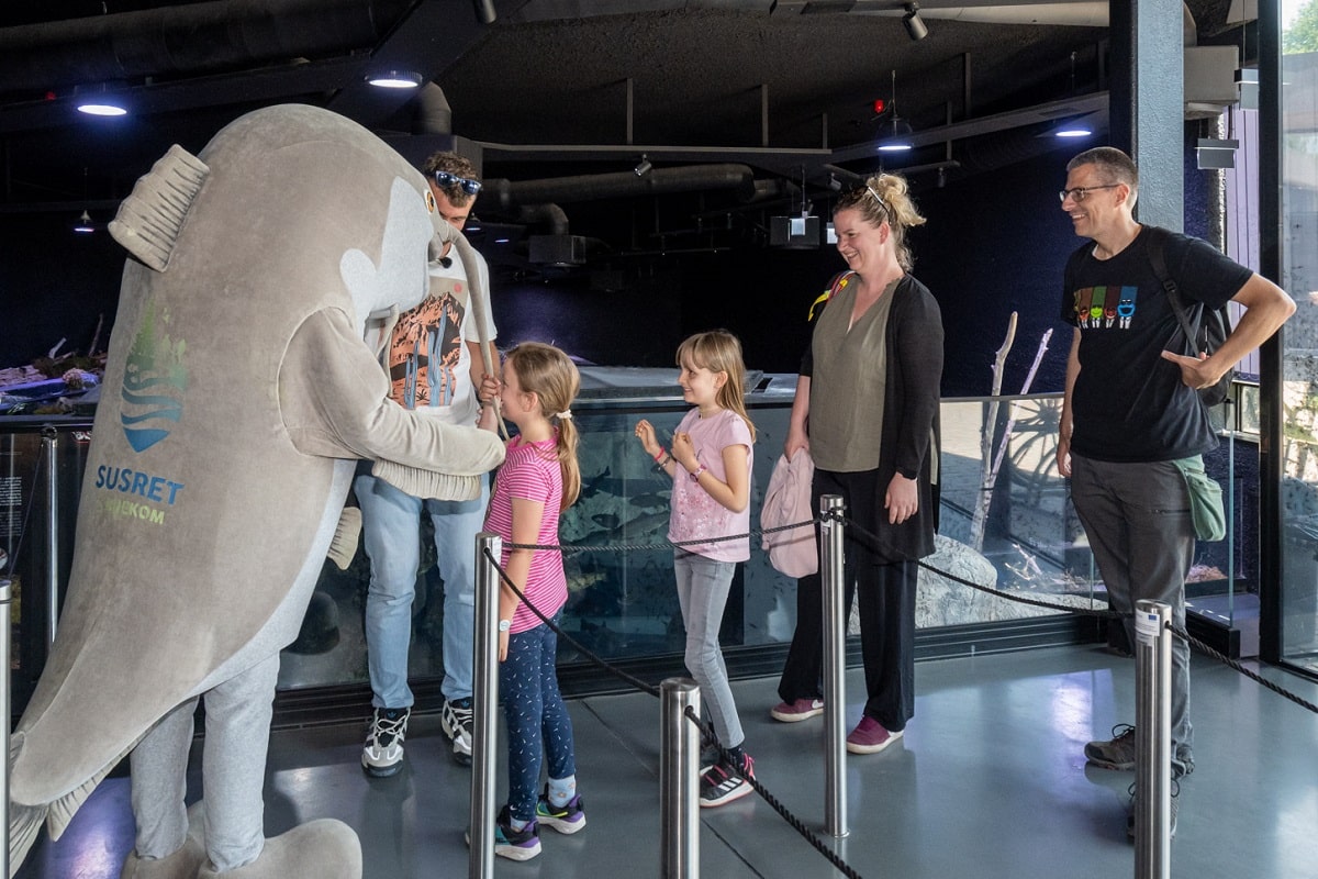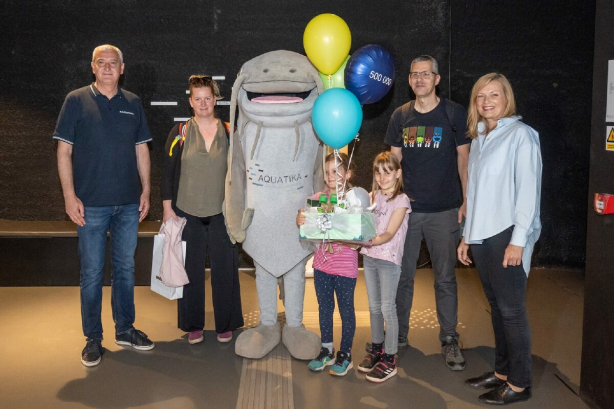 Uzbuđenje je u subotu prijepodne, uoči dolaska jubilarnih gostiju, bilo na vrhunsku. Glancala su se stakla na pultu, koja su bila ponosno ukrašena tabletićima u čast nastupa Baby Lasagne na Eurosongu. Obitelji, grupe prijatelja i parovi izlazili su iz akvarija prepuni dojmova i zainteresirano razgledavali proizvode lokalnih proizvođača u suvenirnici Aquatice. A onda su stigli. Maja i Iva Pejčić te Tonka i Vedran Vučičić iz Zagreba pomalo su zbunjeno, ali oduševljeno, primili vijest da su baš oni jubilarni gosti ustanove koja spaja edukaciju, zabavu, brigu za okoliš i lokalnu zajednicu.