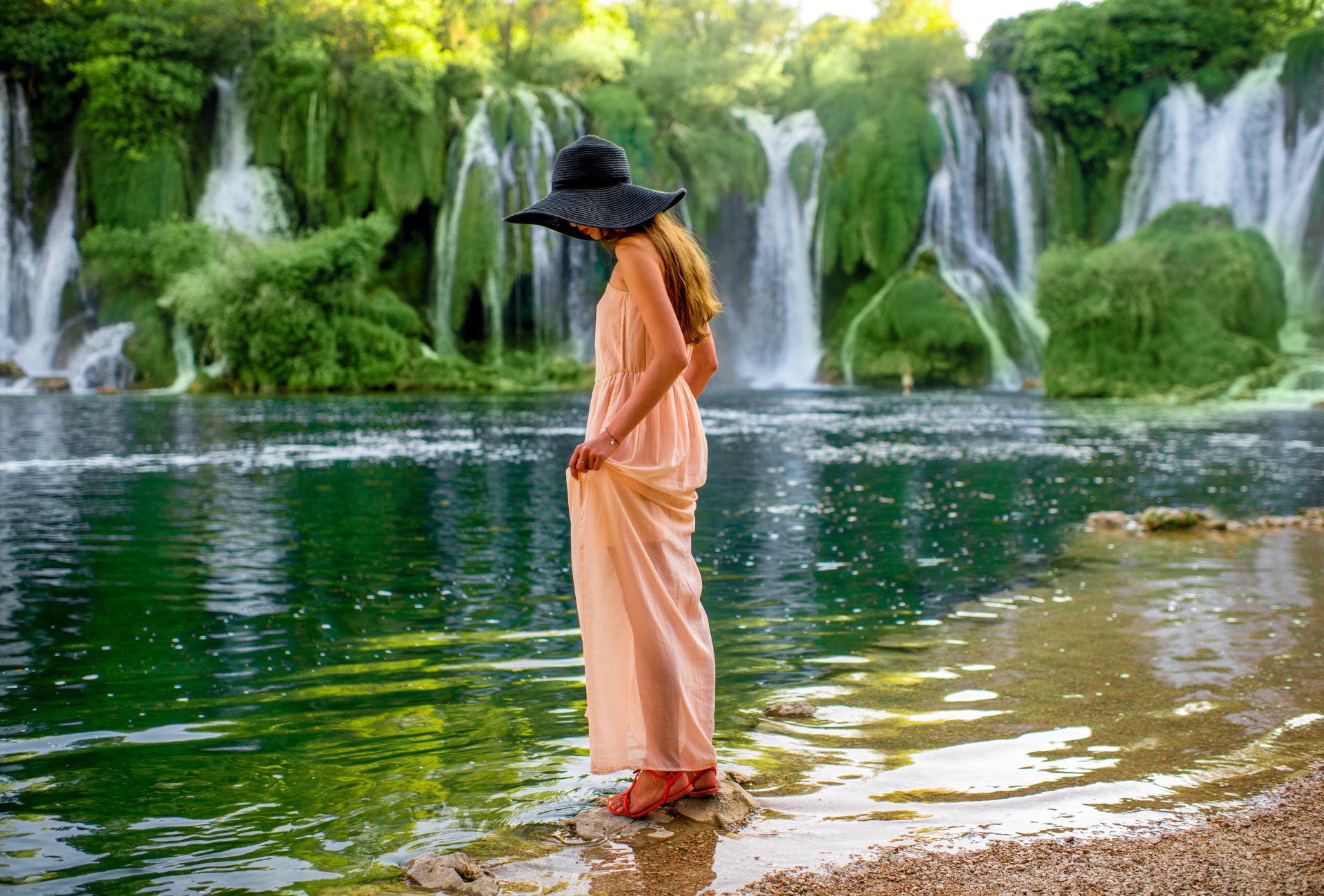 Na tom čarobnom mjestu rijeka Trebižat pada niz maleno brdo i stvara spektakularne slapove koji se protežu na impresivnih 120 metara u širinu, a najveći među njima dostiže visinu od 28 metara. Proljeće i ljeto doista su idealno vrijeme za otkrivanje ove očaravajuće destinacije jer, zahvaljujući nižem vodostaju, ispod slapa pruža se prilika za osvježavajuće kupanje i uživanje u raznovrsnim vodenim sportovima.