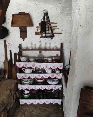 Veža je s tavanom ili izbom, na kojem su se sušili meso i sijeno te čuvali zrnata hrana, orasi i sušeno voće, bila povezana ljestvama. Drugi glavni prostor, onaj za odmor i posijelo, bila je hiša ili soba, pozicionirana s ulične strane kuće, dok je treća i zadnja u nizu prostorija bila štala. Ondje se, osim stoke, nalazio i WC, a ispod nje bio je ukopan trap, tj. preteča podruma, koji je uglavnom služio za čuvanje krumpira i druge hrane.