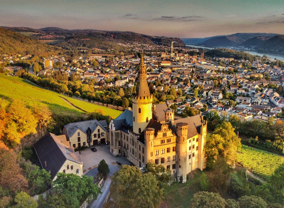Dvorac Arenfels koji datira iz 13. stoljeća, smješten je među vinogradima u jugozapadnoj Njemačkoj, nadvijajući se nad malim gradom Bad Honningen na obalama Rajne. Stan za iznajmljivanje, naveden kao ‘lovačka soba’, nalazi se u zapadnom krilu dvorca i nudi prekrasan pogled na regiju.