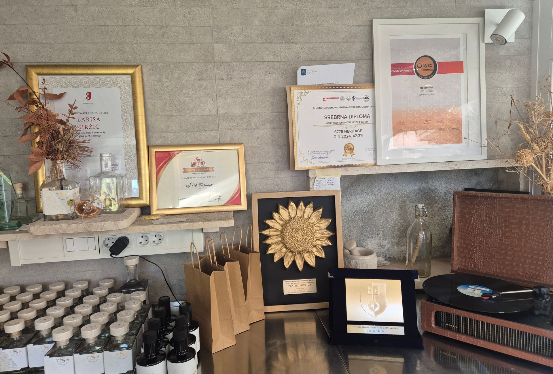 Prve kapi džina kakav danas proizvodi pojavile su se u srpnju 2023.. Samo nekoliko mjeseci kasnije poslala ga je na GinIstru, natjecanje ginova. „Nisam očekivala previše, napravila sam malu seriju, više za sebe. A na kraju sam osvojila zlato i dobila fantastičan feedback. To mi je potvrdilo da sam na dobrom putu i dalo mi motivacije da nastavim na isti način,“ prisjetila se Larisa prvog priznanja koje je osvojila.