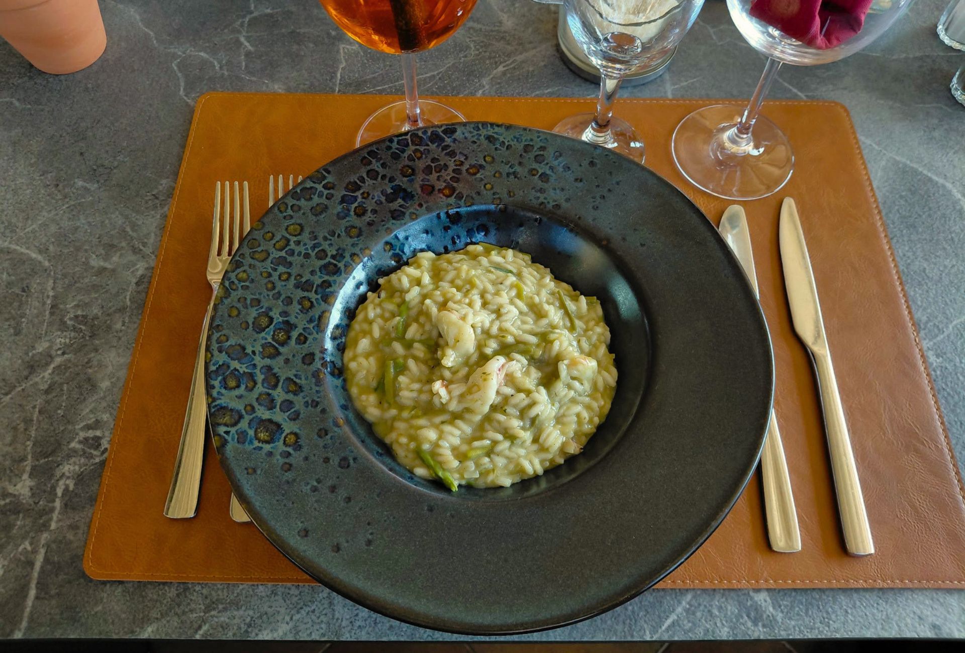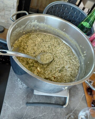Naš proljetni posjet Vrsaru savršeno se poklopio s njihovim rižotom od šparoga. Više od polovice te biljke čini tvrd i nejestiv dio, no intenzivnog je okusa pa Žužići od njega rade temeljac koji je baza jela. ”Pripremamo ga od nule: od dinstanja luka i tostiranja riže, preko dodavanja vina do postupnog podlijevanja temeljcem. Pred kraj idu prodinstane šparoge i tek onda svježe glavice, a sve se zaokruži maslacem, parmezanom, kapljicom maslinovog ulja na hladno i paprom”, tumači Žužić.