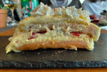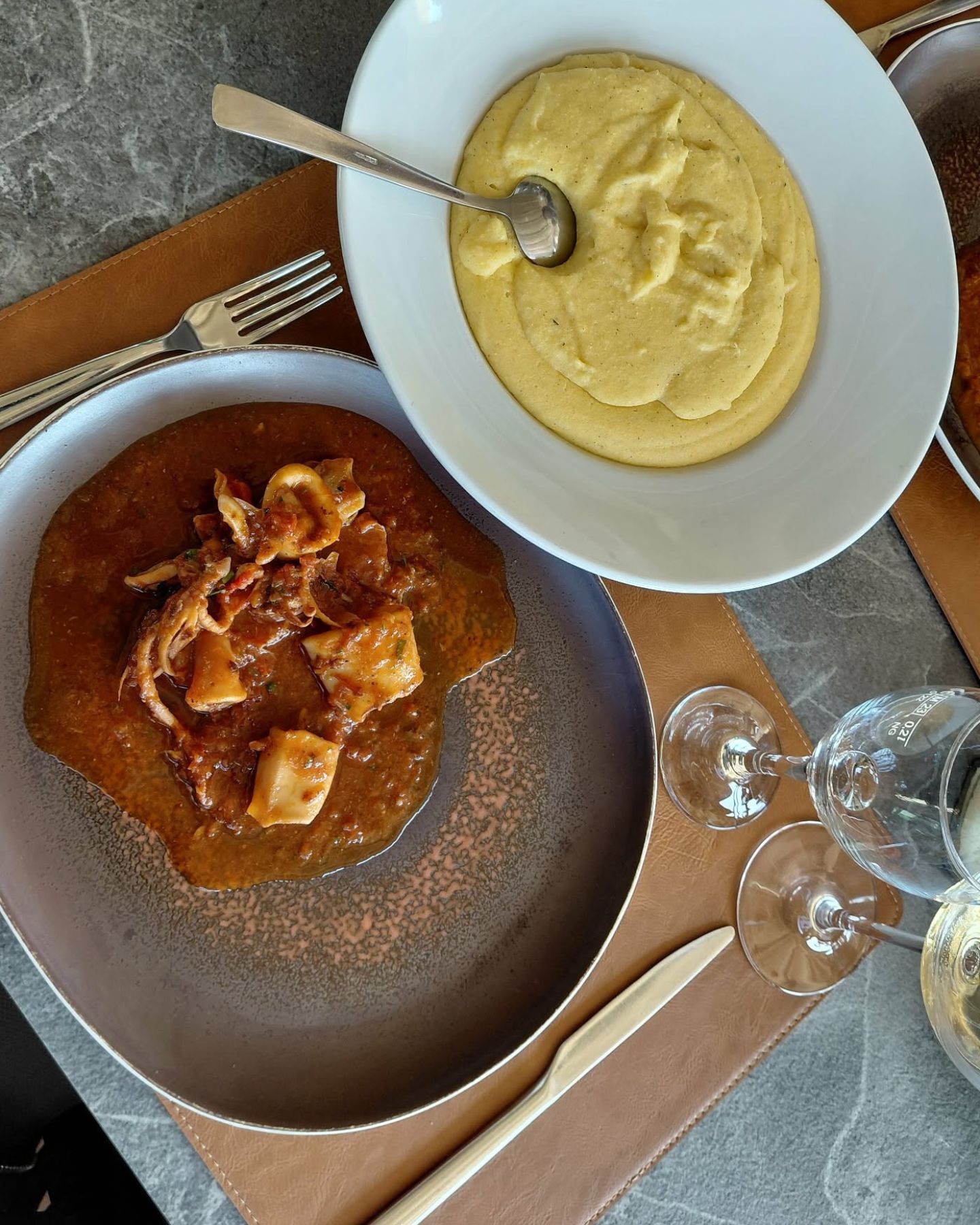 Drugo jelo koje smo kušali bilo je palenta sa šufiganim lignjama, tj. lignjama na crveno. Sve je bilo i više nego savršeno, ali ta božanstveno kremasta i mekana palenta, dodatno obogaćena mascarponeom i aromatičnim začinskim maslacem (po želji i temeljcem), oborila nas je s nogu. Za malo jaču aromu, naš domaćin voli dodati i kap maslinovog ulja te malo soli i svježe mljevenog papra.