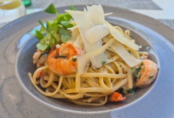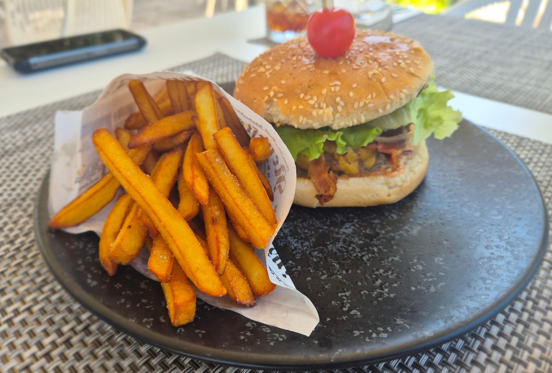 Hotel Osam je mali, adults only hotel s četiri zvjezdice i 31 sobom. U kuhinji je tim internacionalan, kao i jelovnik. Mi smo probali Marion shrimp pasta, tjesteninu s kozicama, te njihov Otok burger. Iako opisom jednostavna, oba su jela bila prepuna okusa i bilo nam je jasno zašto su se svidjela Michelinovim inspektorima. Ponekad je baš na jednostavnim i svima poznatim okusima najteže otići korak dalje i učiniti jelo prepoznatljivim.