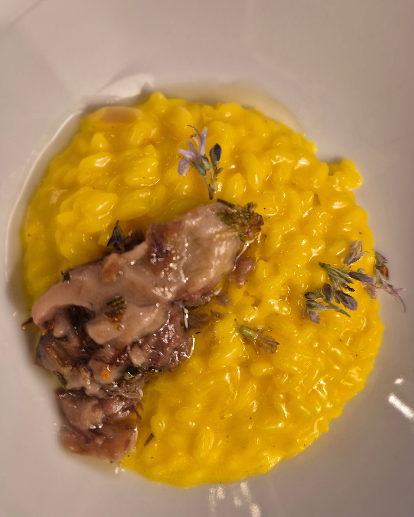 Toplo predjelo bio je rižoto sa šafranom i koštanom srži boškarina, savršeno kremast i pun okusa. Ta je srž klasičnom jelu dala dodatnu punoću i učinila ga, ako je to uopće moguće, još boljim.