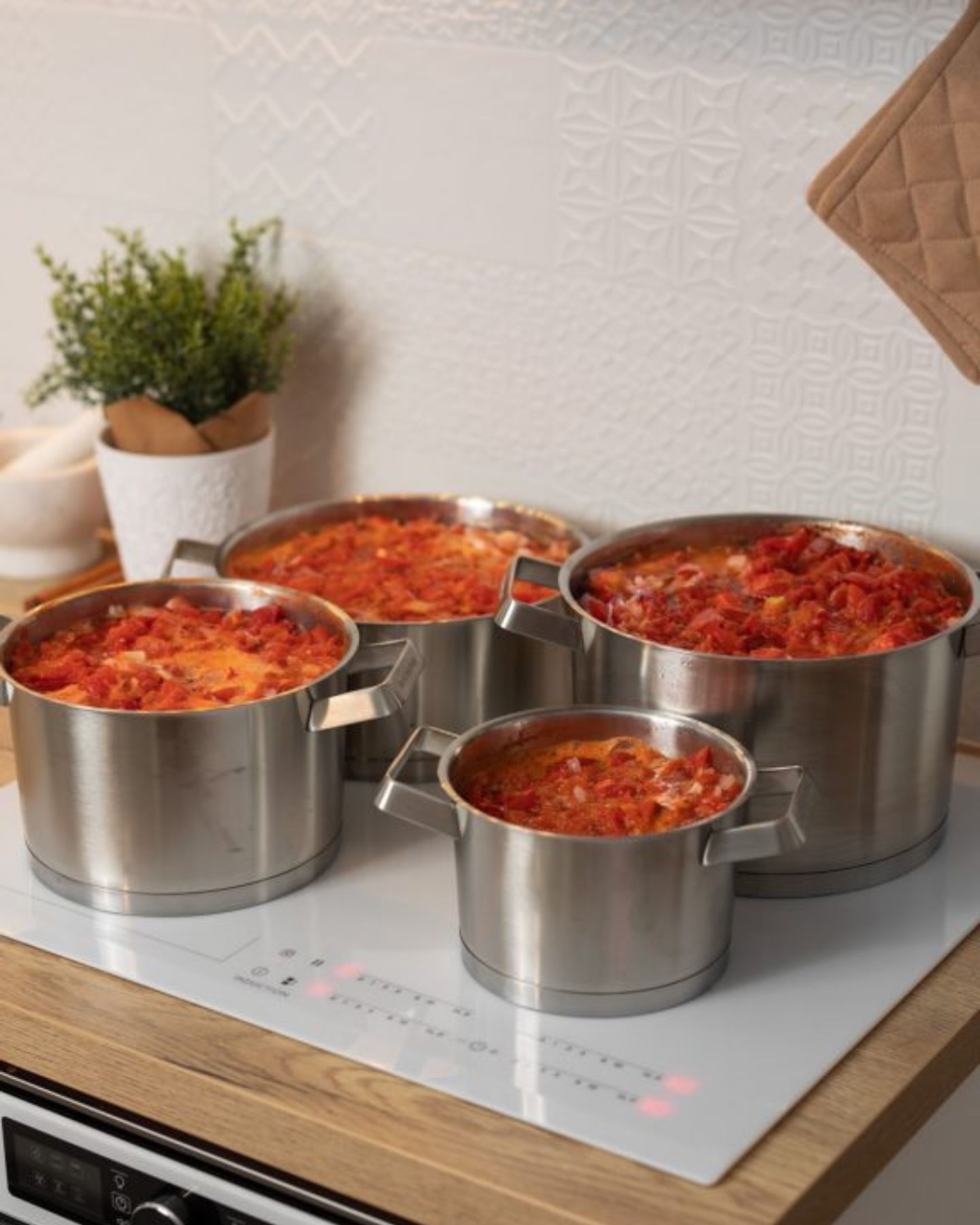- Stavite lonac na štednjak i pričekajte nekoliko minuta da rajčice omekšaju i puste sok. Kad zavrije, smanjite vatru na najmanju moguću, dovoljno da lagano vrije, ali da se ne kuha prejako. Cilj je polagana redukcija tekućine.