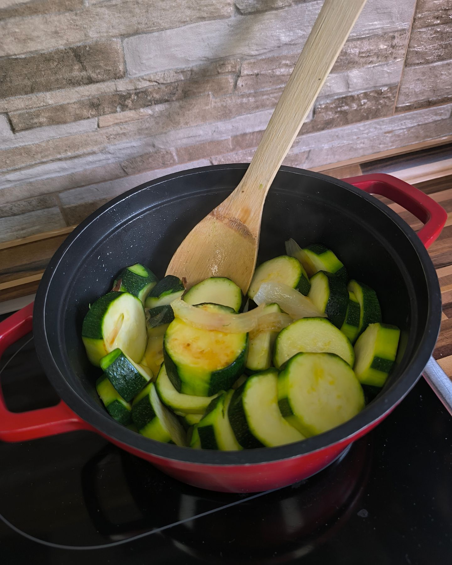 4. Podlijte s povrtnim temeljcem, začinite solju i paprom, pa kuhajte 15-20 minuta dok tikvice ne omekšaju.