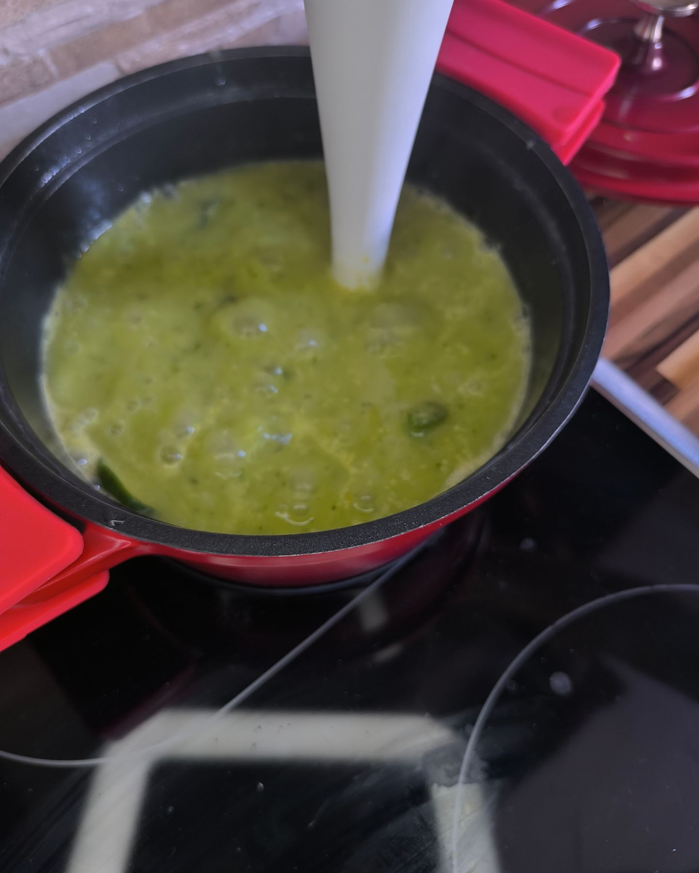 5. Maknite s vatre i sve usitnite štapnim mikserom (ili u blenderu) u glatku kremu.