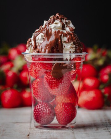 Domaće jagode na štapiću, prelivene belgijskom Callebaut čokoladom, temperiranom do savršene teksture.