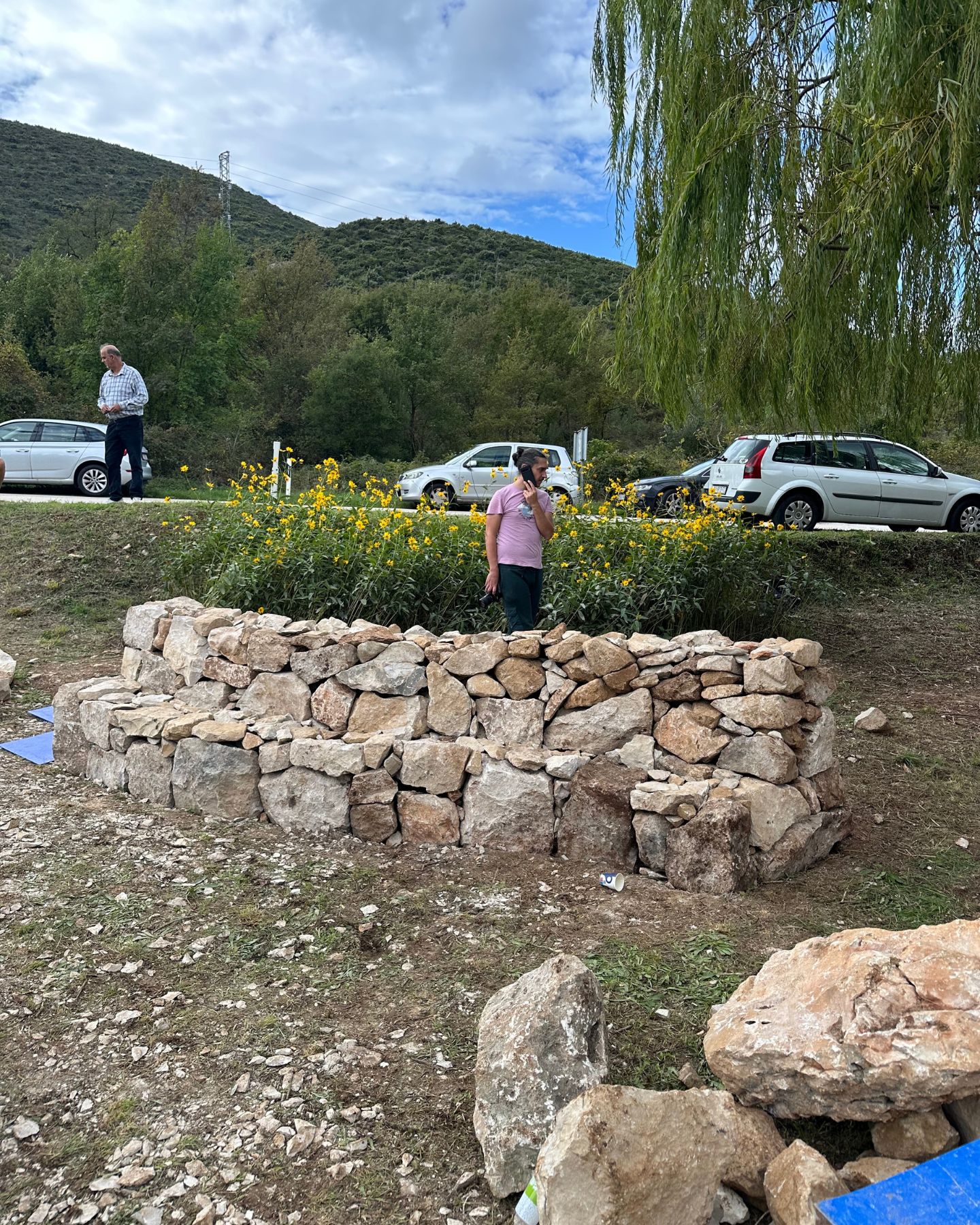 Pojašnjava kako nemaju tvrtku te da je gradnja suhozida njihov hobi. Uskaču često i kad treba sanirati neki suhozid…Vi ste onda kao doktori za suhozide, šalimo se… “Moj otac da”, odmah odvraća skromno Dora, “ali ja sam samo asistentica”. Trenutačno ih, pojašnjava dalje, ne grade jer se zadnjih dana bilo kiše pa je sve, kaže, ‘glibavo’. No, to su vrijeme iskoristili za izviđanje nekoliko lokacija na koje su ih ljudi pozvali te ih tražili mišljenje.