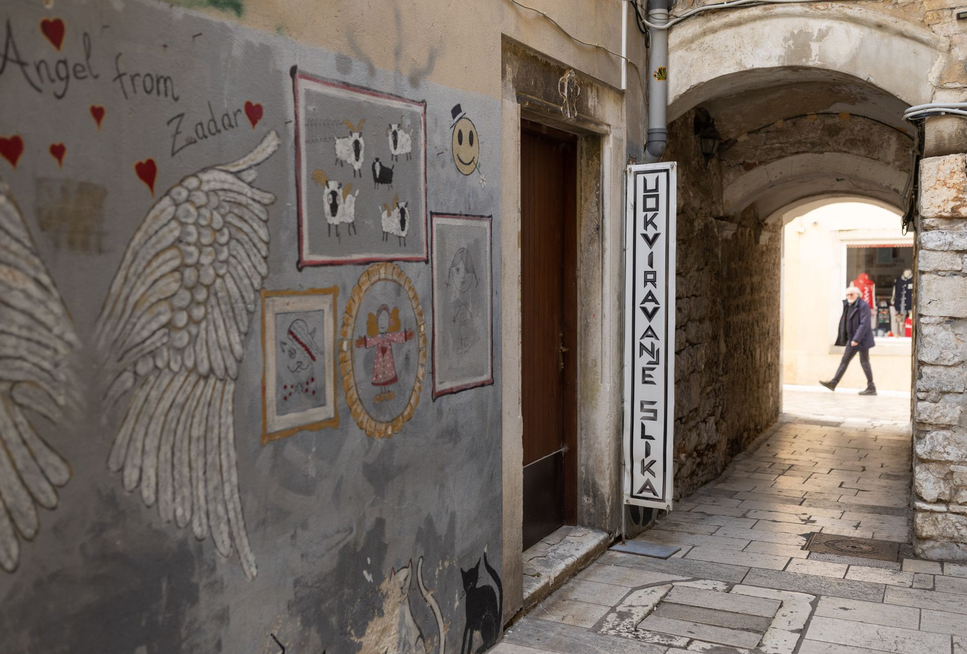 Uživa, kaže, u baš svakom dijelu posla, od pripreme do završnog sklapanja. Zanimljiv mu je i terenski rad, poput već spomenutog slaganja slike na stropu crkve. „Dolaze nam Zadrani, ali i ljudi iz cijele Hrvatske. Dođu i stranci, Belgijanci, Francuzi, neki se i vraćaju iz godine u godinu. Najbolja reklama nam je preporuka,“ govori nam Dominik okružen okvirima, neobrađenim letvicama i paspartuima.