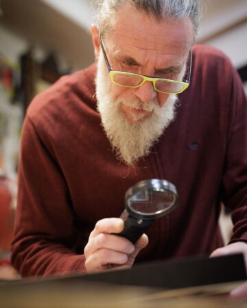 Branimir Šalov je u poslu, kroz jarko žute naočale spaja dvije letvice za novi okvir. Ipak, nalazi za nas vremena i vodi nas kroz povijest obrta u kojem danas rade on i njegov sin Dominik. Radionica se nalazi u ulici Špire Brusine 7, registrirana je 1988. godine, a ime Laurana dobila je po braći Vranjanin, Lucijanu i Franji, koje su zvali Laurani. Tih 38 godina puno je vremena, zanimalo nas je koliko se uokvirivanje slika od tada promijenilo, je li i tu tehnologija nešto ubrzala i olakšala?