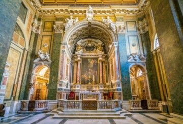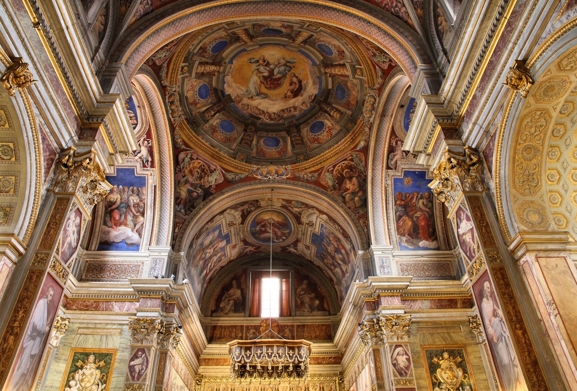 „Oslikavanje crkve iznutra papa Siksto V. povjerio je slikaru Giovanniju Guerri koji je sa svojim suradnicima već iduće godine izradio nekoliko freski u svetištu te na svodu crkve. Smrću pape Siksta V. 1590. radovi se zaustavljaju te će tek kroz nekoliko idućih stoljeća crkva iznutra dobiti svoj današnji izgled. Posljednji veliki slikarski radovi napravljeni su sredinom 19. stoljeća, a izradio ih je talijanski majstor Pietro Gagliardi,“ navodi se na stranici ovog jedinstvenog svetišta.