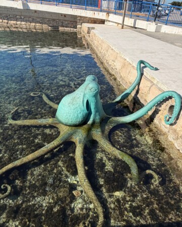 JEDNA NOVIJA ATRAKCIJA JE ZABAVNI SPOMENIK HOBOTNICI KOJA POKUŠAVA IZAĆI IZ MORA