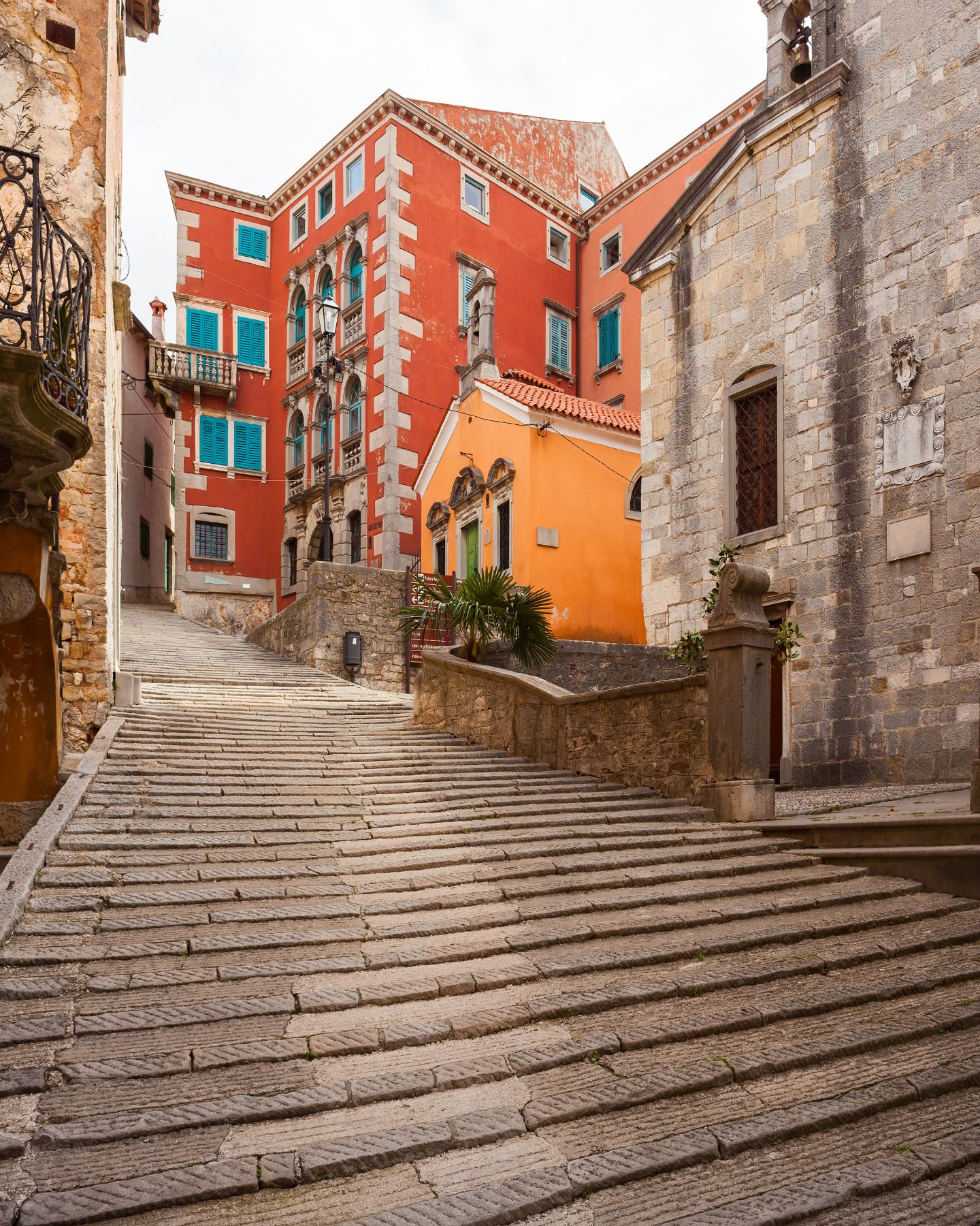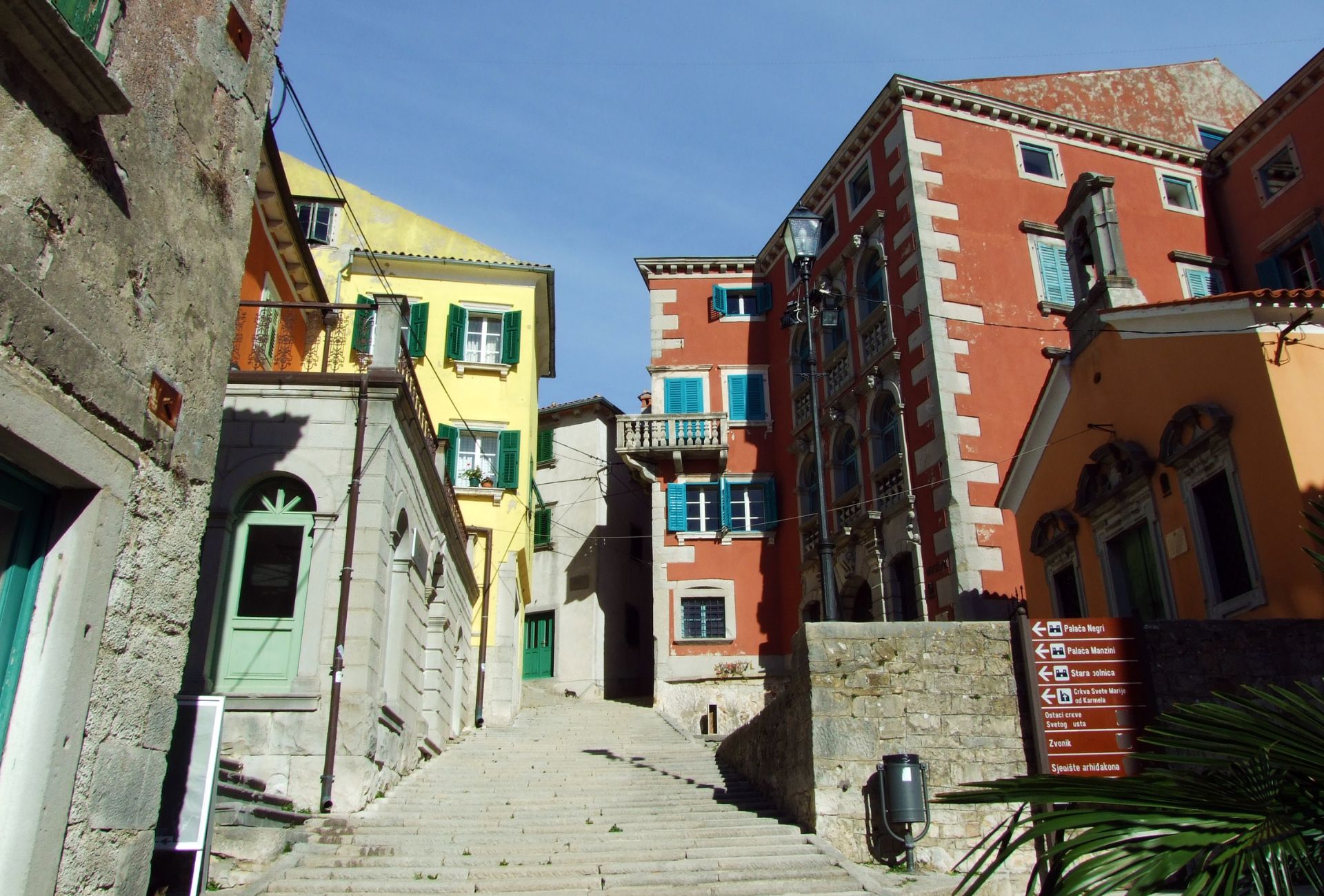 Smještena u starogradskoj jezgri, tik do župne crkve Rođenja Blažene Djevice Marije, pozornost plijeni svojim pročeljem intenzivno crvene boje, ali i bogato dekoriranim arhitektonskim elementima. Oni su pak, u vizualno savršenom kontrastu, izrađeni od finog, snježnobijelog kamena.