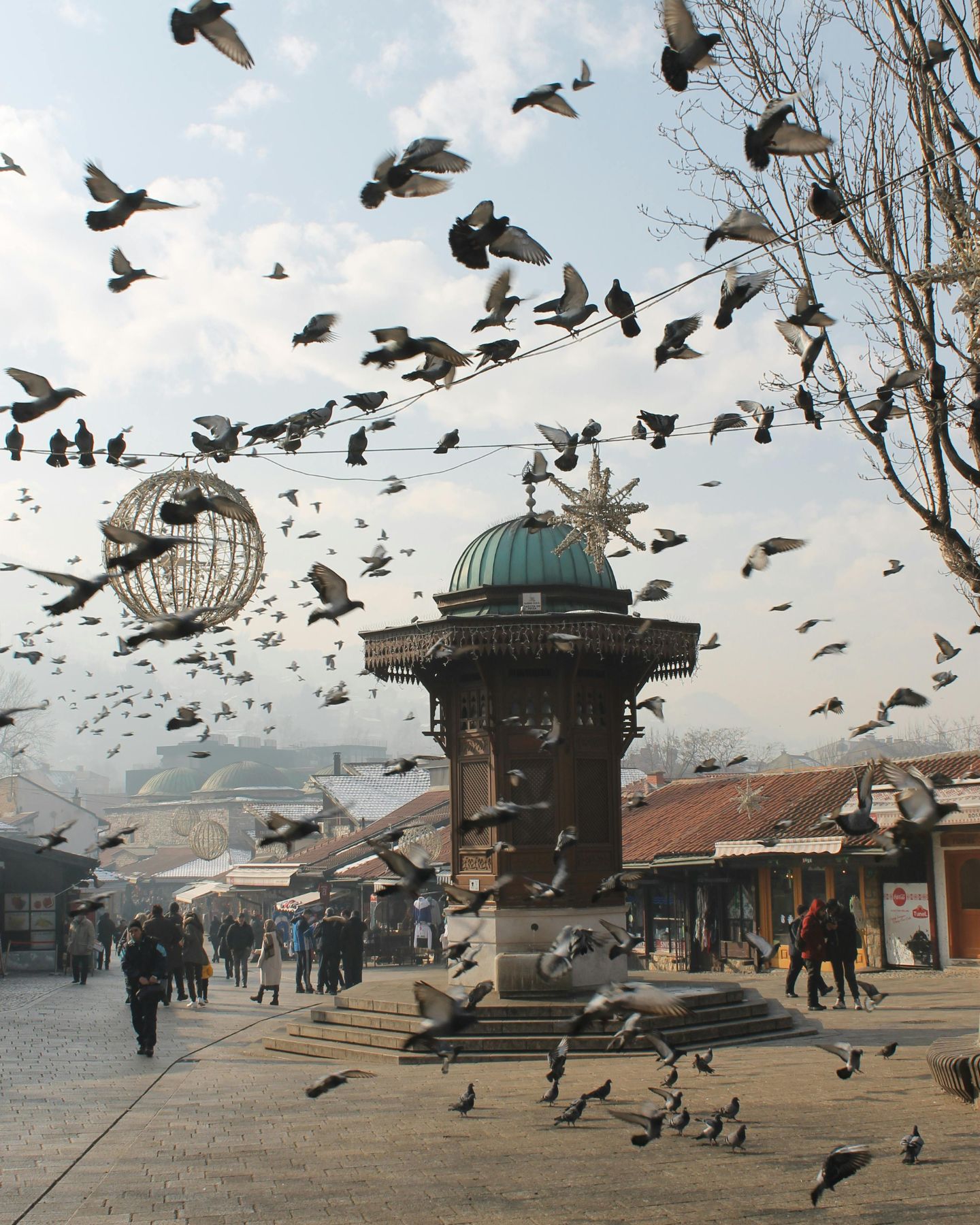 Baščaršijski trg oko jedinog sarajevskog sebilja u narodu je poznat i kao Trg golubova, a turisti ga obožavaju zbog njegove živahne atmosfere. Ondje od lokalnih prodavača možete kupiti kukuruz ili pšenicu za hranjenje ptica, ali i uživati u spontanim kulturnim spektaklima. Zahvaljujući uličnim sviračima i slikarima amaterima, ovaj dio grada u sekundi se pretvara u improviziranu galeriju na otvorenom, a najljepše ju je, kažu, doživjeti u toplim, ljetnim mjesecima.