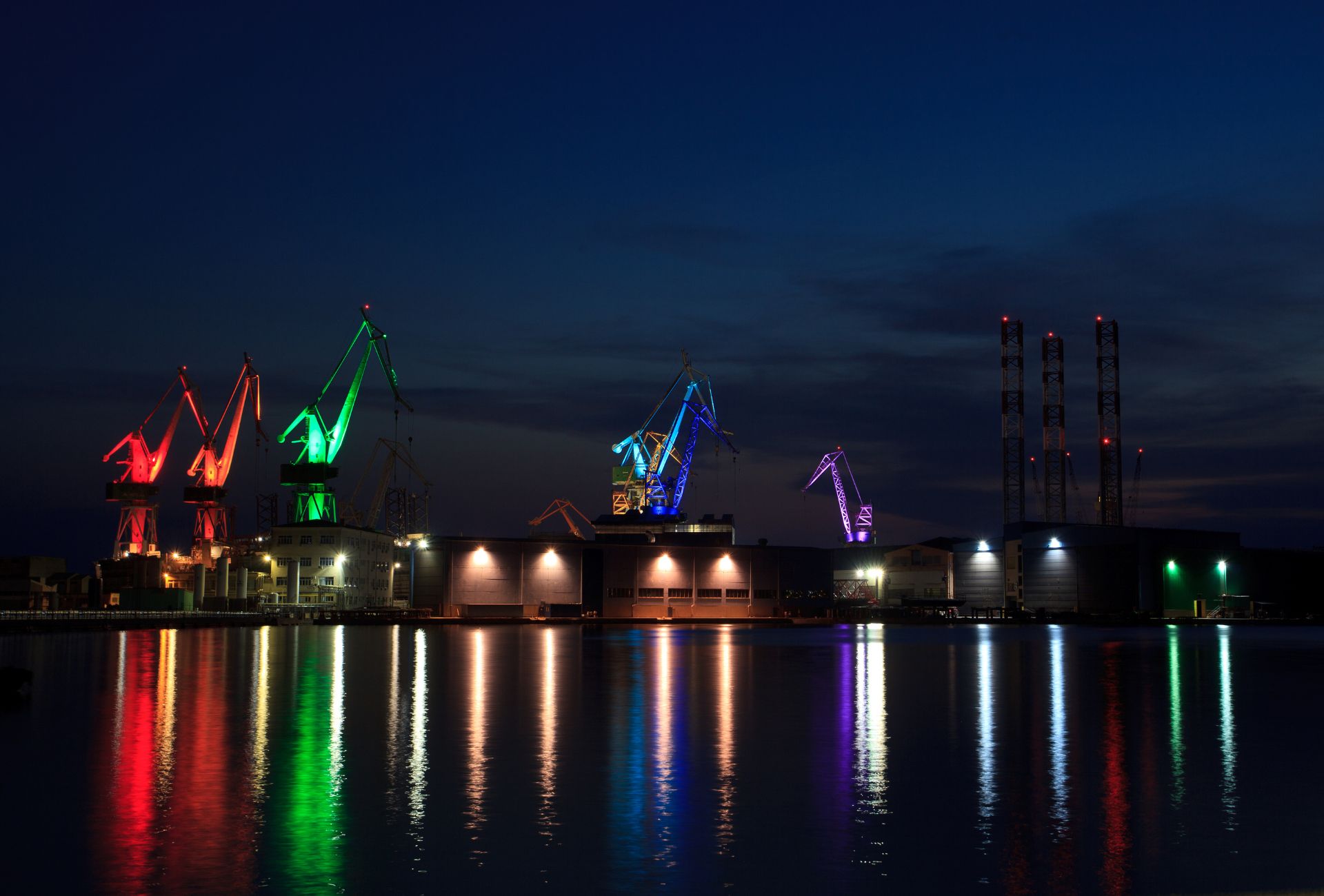 Dizajner rasvjete Dean Skira osam brodograđevnih dizalica na otočiću Uljaniku u pulskom zaljevu pretvorio je u umjetničku instalaciju koja oduševljava turiste