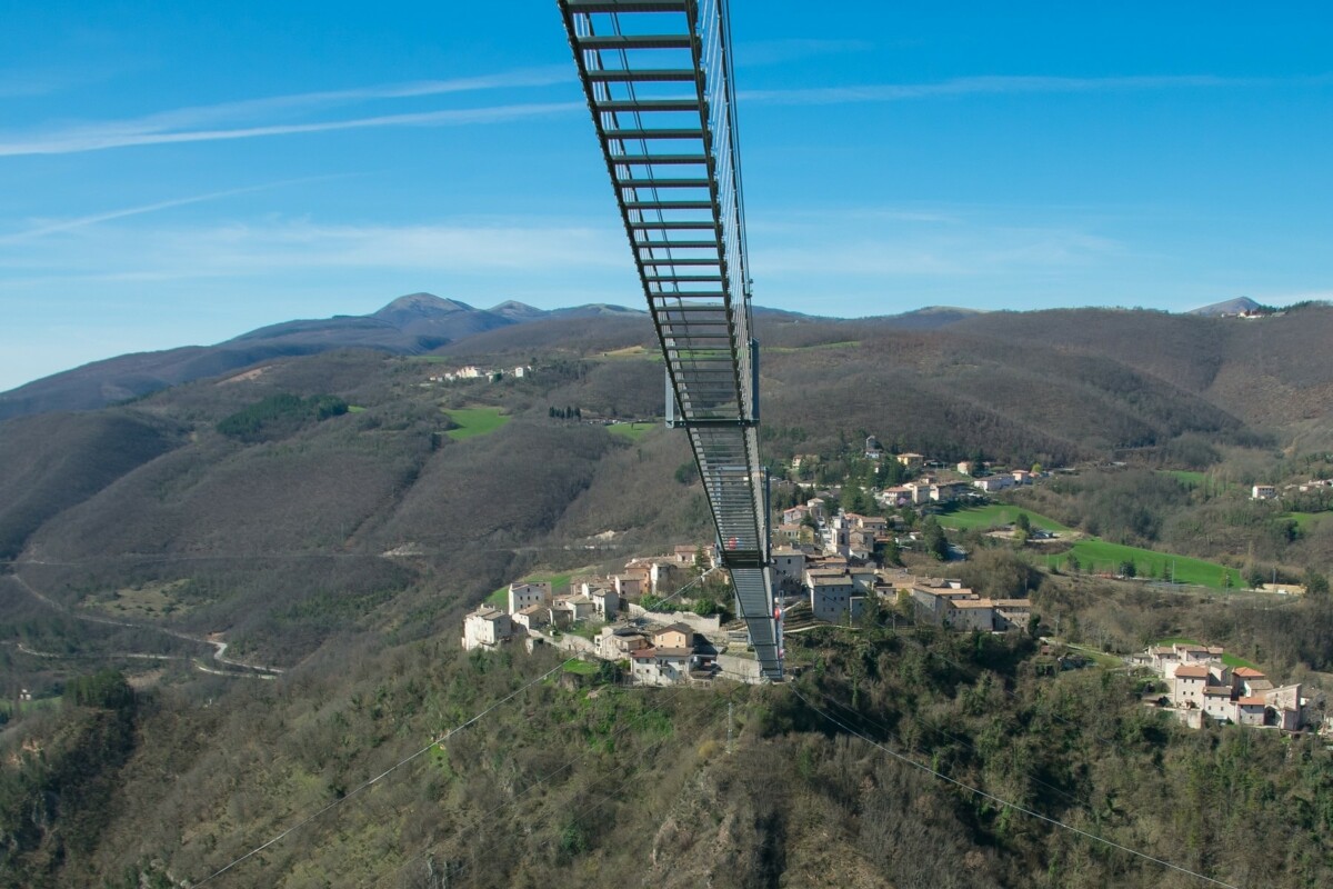Tibetanskim mostom nazivamo pješačke, viseće mostove koji povezuju dvije “uzvisine”, odnosno cijelom su dužinom visoko iznad zemlje. Često su izgrađeni od lanaca, zbog čega nisu čvrsti već prilično fleksibilni. Most u Umbriji povezuje sela Sellano i Montesanto preko doline i jezera, a proteže se 175 metara iznad zemlje. Atraktivni viseći mostovi već postoje diljem Europe, najpoznatiji su u Italiji, Portugalu i Andori, no ovaj je svojim karakteristikama postao europski rekorder. Dugačak je 517,5 metara, sastoji se od 1023 stepenice, a između svake je zastrašujući razmak kroz koji se može vidjeti provalija nad kojom prolazi.