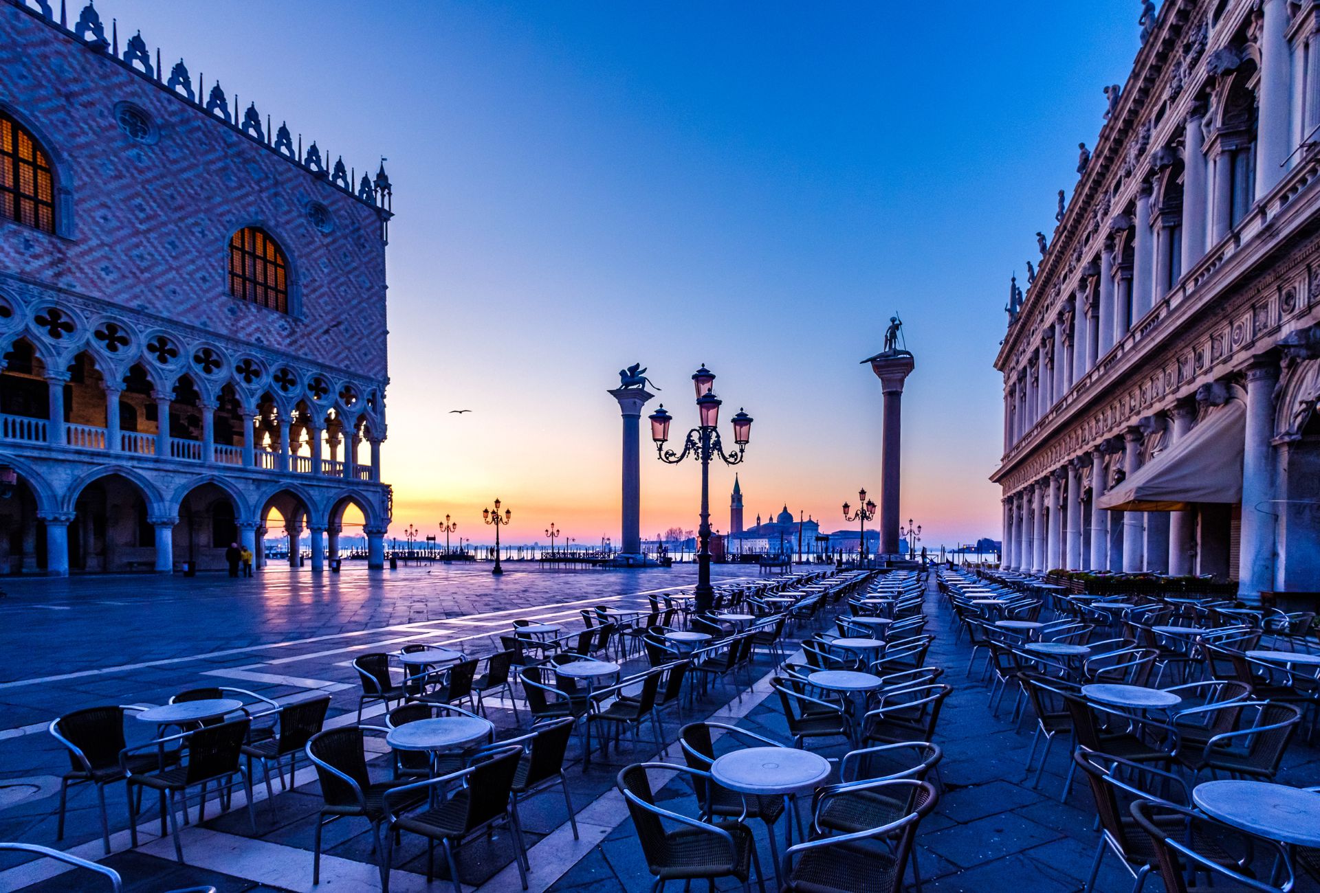 Naravno, tu je i Duždeva palača. Pri pogledu na to velebno zdanje, rezidenciju mletačkog dužda, vrijedi obratiti pozornost na dva ružičasta stupa u ‘moru’ bijelih. Riječ je o mjestu s kojeg je dužd objavljivao smrtne presude, a upravo je ta boja simbolizirala krv. Osuđenike bi zatim vješali između dva stupa na trgu ukrašenima statuama, krilatim lavom i ukrašenima statuama sv. Teodora te krilatog lava, koji je simbol sv. Marka, i ostavili ih tamo danima, kao upozorenje ostalima. Prolazak između stupova navodno znači nesreću.