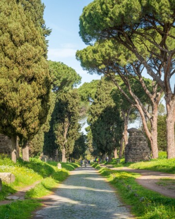 Via Appia proteže se sve do Brindisija u Apuliji, na istočnoj obali Italije, i putem otkriva prekrasne prizore talijanskog krajolika. Prvih deset milja nalazi se unutar Nacionalnog parka Parco dell’Appia Antica, zelenog povijesnog prostora površine 4.580 hektara, smještenog tik uz rub Rima i lako dostupnog javnim prijevozom.