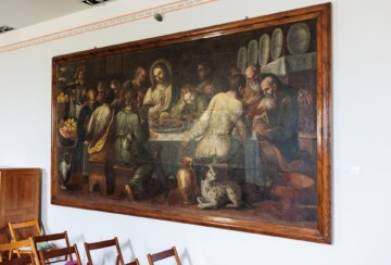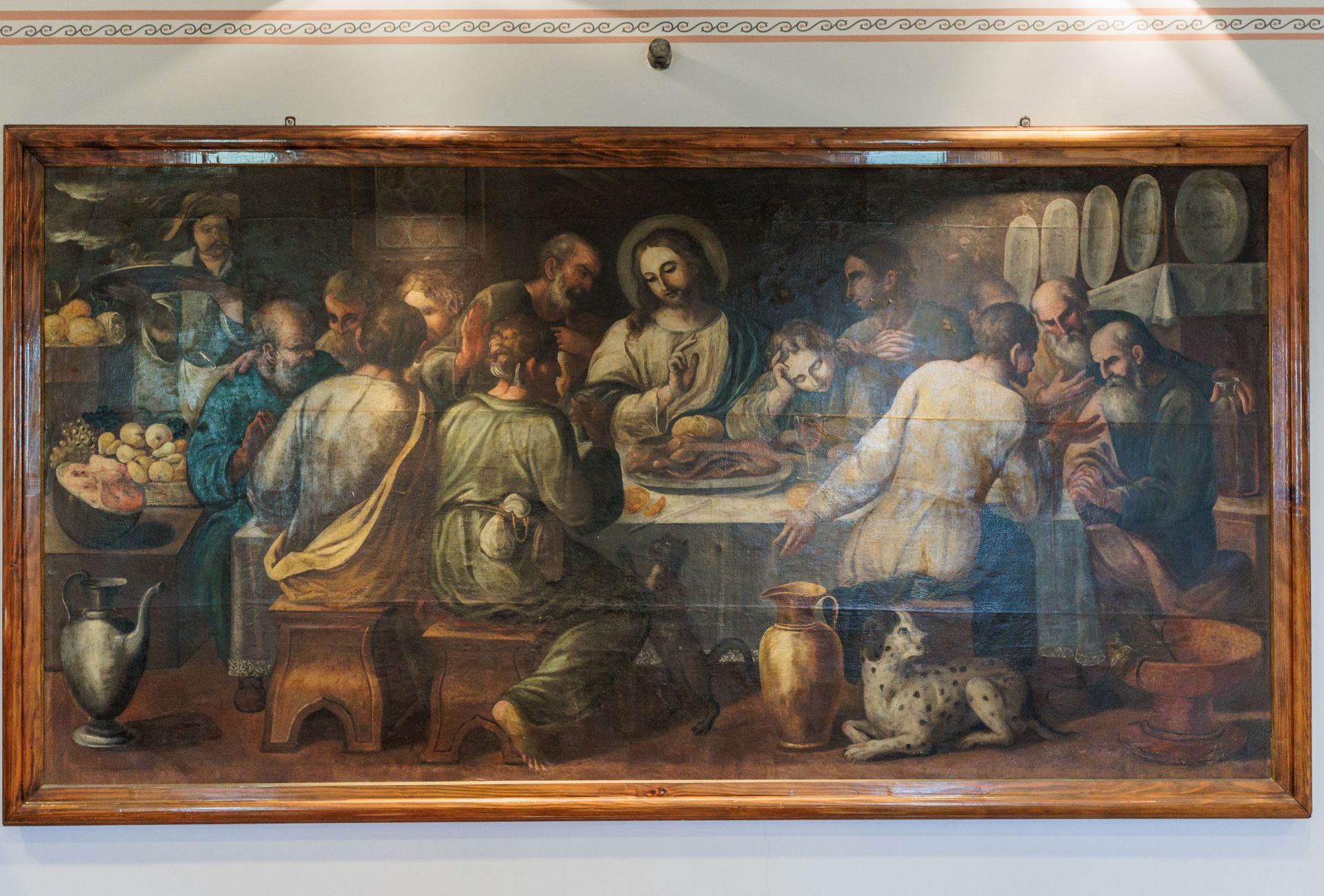 Božena nas vodi do samostana i kapelice koja čuva neprocjenjivu sliku: prvi cjeloviti prikaz dalmatinskog psa u sakralnoj umjetnosti. I zaista, eno ga. Na prikazu Posljednje večere, nepoznatog autora iz 18. stoljeća, apostolima pod nogama, tik uz zlatni ćup, leži on, dalmatinski pas, pogleda nezainteresirano uperenog u daljinu.