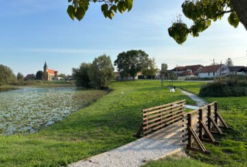 Nakon plaže Kucel, odlučili smo jednostavno pratiti Savu. I ostali oduševljeni. Cesta je nekako uzana, no dovoljna za dva automobila, često zaštićena metalnim ograda: s jedne strane od pada u Savu, s druge od nekoliko metara visoke nizbrdice prema poljima. Krajolik je nadasve pitom i trenutačno, okupan tim rujanskim suncem, kao da sjaji zlatno… Sve zove na šetnju, vožnju biciklom, općenito uživanje u prirodi. Iako nam je želja bila skela, Savu smo na kraju prešli u Martinskoj Vesi, preko 160-ak metara dugog mosta koji je svojom veličinom sušta suprotnost tamošnjim selima i mjestašcima…