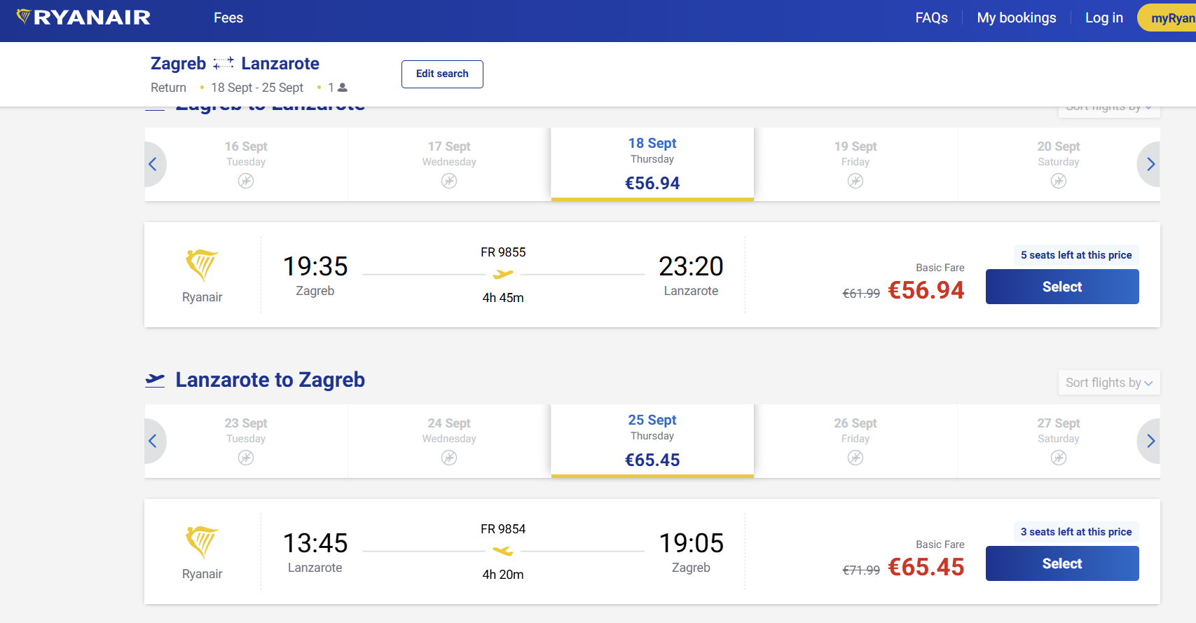 Za razliku od većine europskih linija koje traju između jednog i tri sata, let Zagreb – Lanzarote traje gotovo pet sati. Time se ova linija može svrstati među najduže unutar Europe koje Ryanair obavlja, a posebno je zanimljiva putnicima koji žele osjetiti duh egzotične destinacije bez potrebe za presjedanjem u drugi avion.