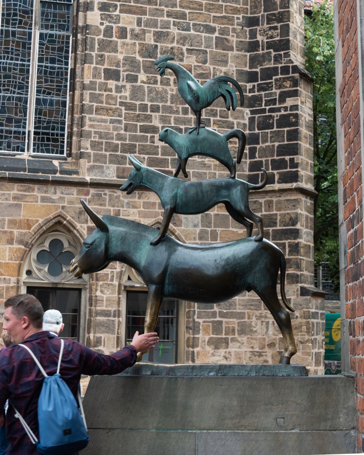 Ako ste ikad čitali bajke braće Grimm, velika je šansa da ste čuli za Bremenske gradske svirače. Magarac, pas, mačka i pijetao, četvorka koja nikad zapravo nije stigla u Bremen, danas su simbol grada. Njihov kip jedna je od najpoznatijih atrakcija, a lokalna legenda kaže da ćete imati sreće ako dodirnete noge magarca. Turisti to, naravno, rade pa ćete tako primijetiti da je upravo taj dio kipa najviše „uglačan“.